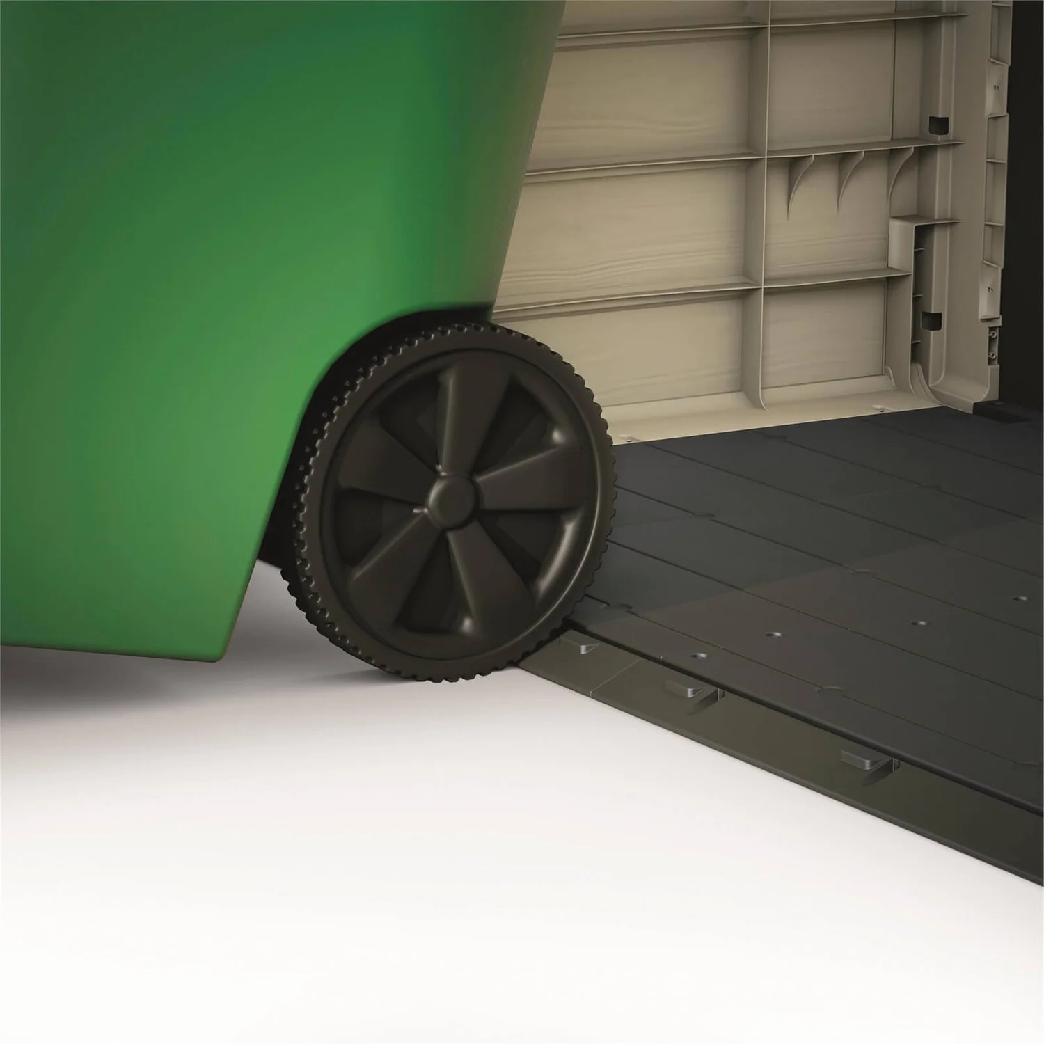 The global best-seller, Store-It-Out Ultra, is a convenient storage unit with a 2000 litre capacity. It has a durable, weather-resistant build that keeps items ventilated and dry. It is versatile and ideal for storing everything from two 360 litre rubbish bins, to barbecues, furniture, bikes or pool pumps. It has a sloped threshold, making it easy to roll items in or out.