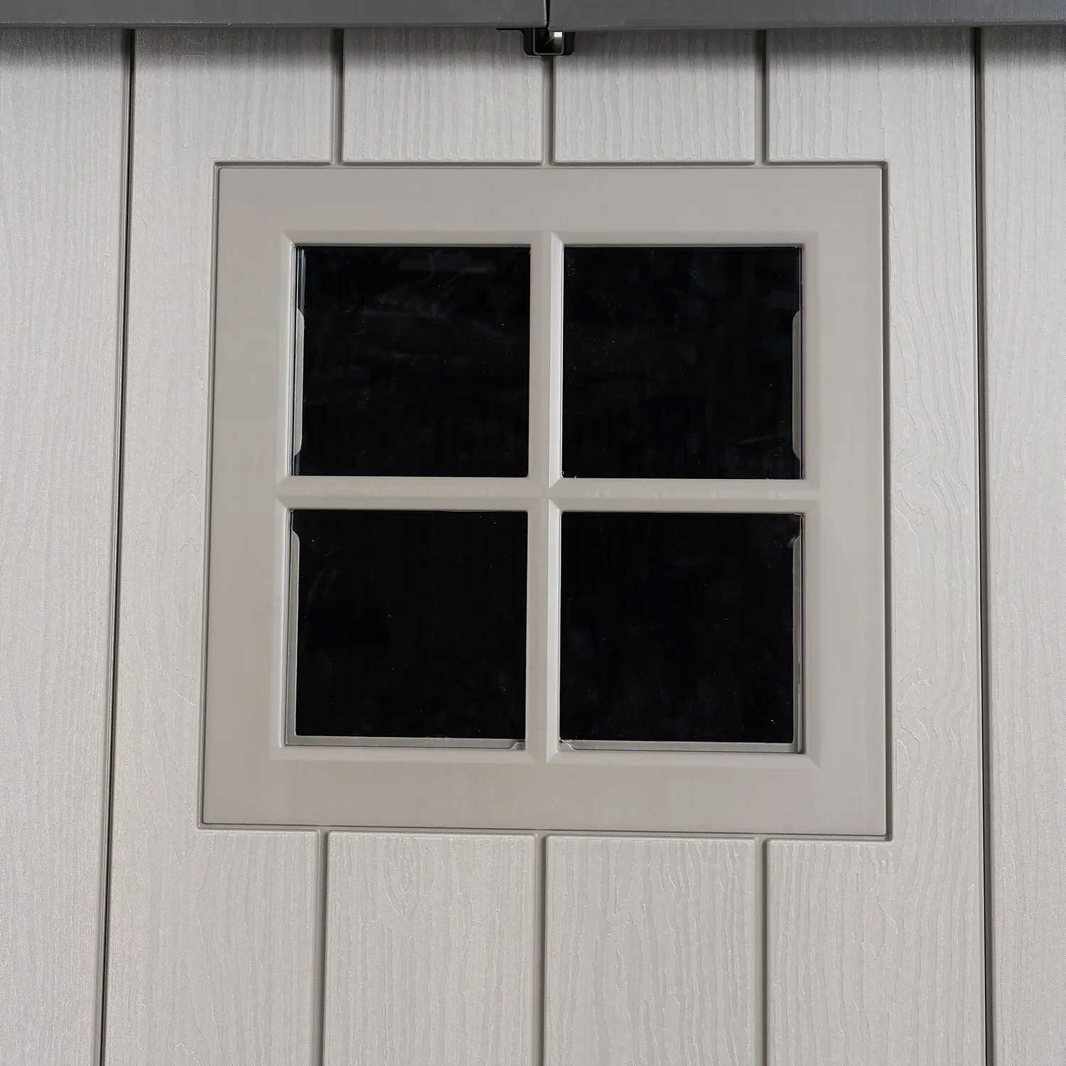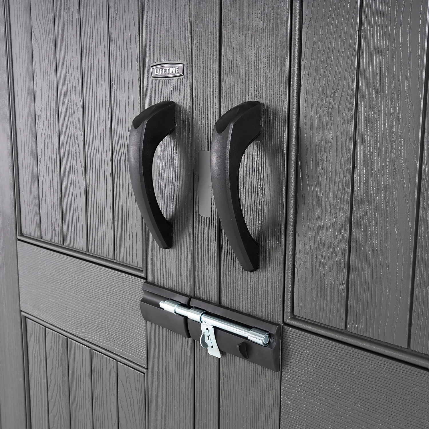 Declutter your garage and find more space to organize your home with Lifetime Sheds. Lifetime’s 7 ft. x 7 ft. Rough Cut™ Sheds are the perfect space for storage bins, gardening tools, and lawn care equipment. The Rough Cut™ Texture has the natural look and feel of wood without the maintenance of painting or staining. The durable HDPE formulation includes UV-resistant pigments and antioxidants that protect the plastic from degrading while ensuring long lasting performance and impact resistance. The steel-reinforced construction, double-wall design ensures a strong structure that is built to withstand the elements. When paired with a sturdy padlock (not included), the steel door latch hasps, deadbolts, and 18-gauge steel reinforcements in the doors provide security and act as a deterrence from theft. The included shed floor (foundation not included) is slip resistant, impact resistant, and protects items stored on the ground. The full-length ridge skylight and wall window provide excellent lighting for the interior of the shed. The wall shelf and 2 corner shelves give you more options for storing your belongings. With a Lifetime 7 ft. x 7ft. Rough Cut™ Shed, you get a stylish and versatile storage option to get organized.