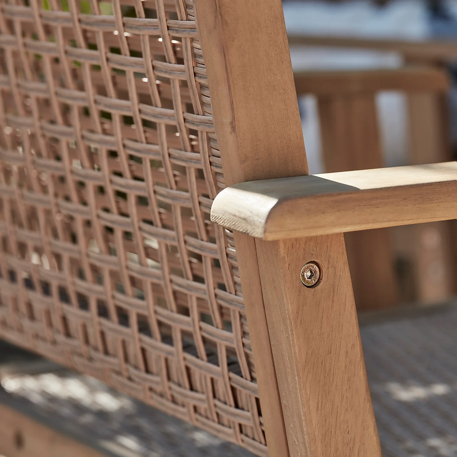 Make al fresco entertaining a delight with the Miri 6 seater outdoor dining set. The slatted table top and woven chair backs and seats will add a touch of contemporary styling to your outdoor seating area. With fixed armrests and backrests you and your guests will be dining in comfort. Made from sustainably sourced wood with steel hardware it’s strong, durable and made to last.