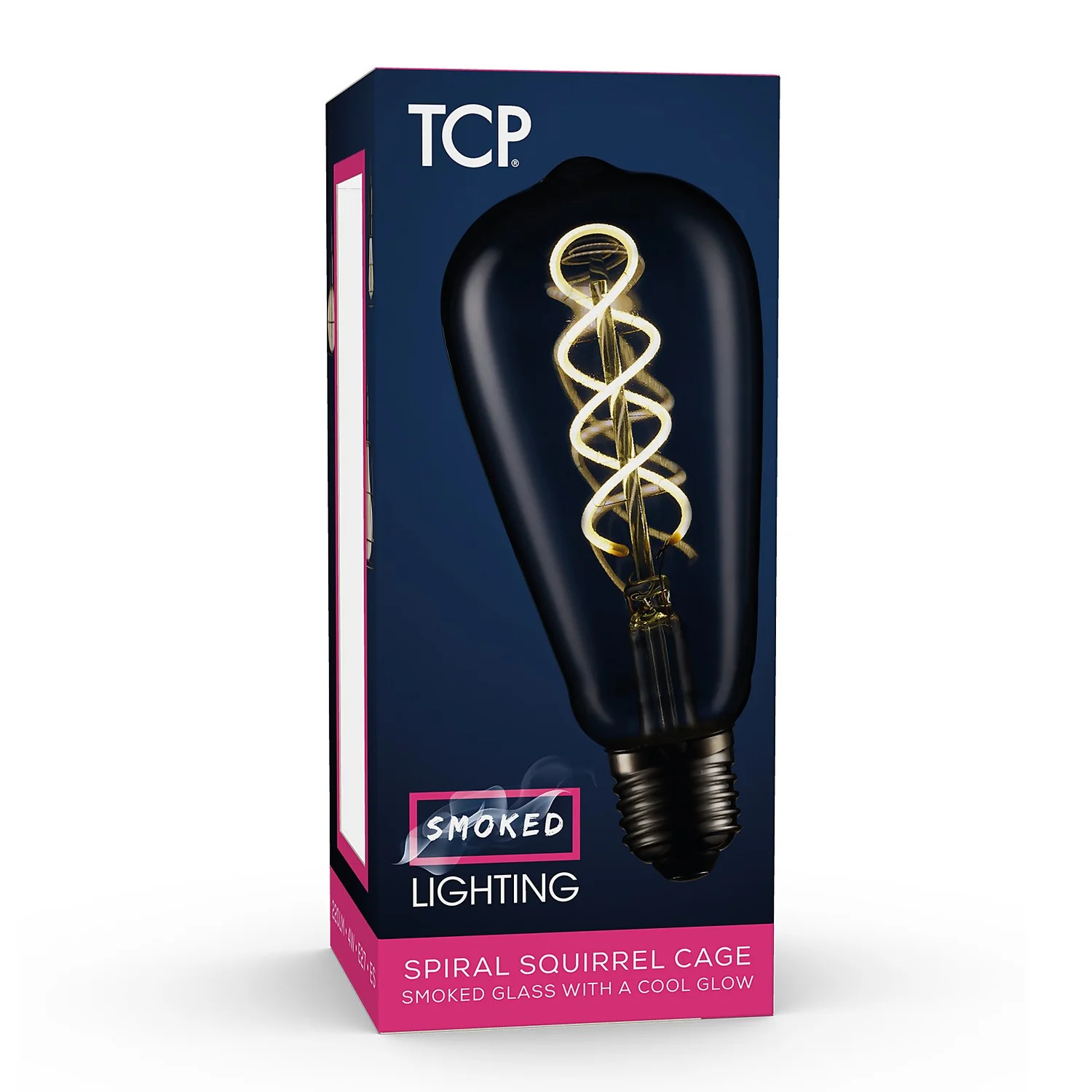 TCP Decorative soft filament STT64 cage lightbulb are ideal for pendant lighting and other exposed lighting fittings. With smoked glass and cool finish